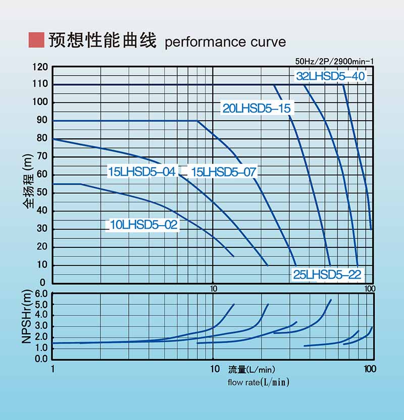 ●過流材質(zhì)為不銹鋼SUS304,最大流量90升/分鐘,最高揚(yáng)程110米,適用范圍廣泛;